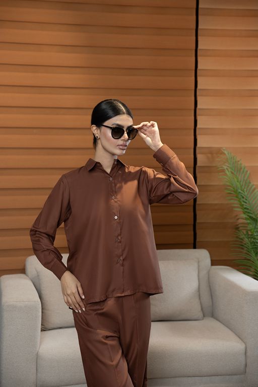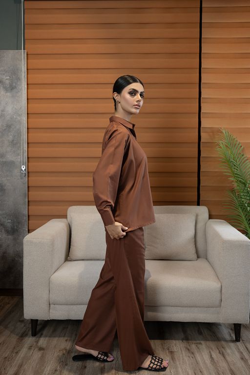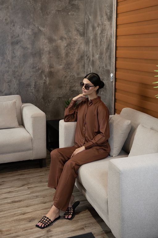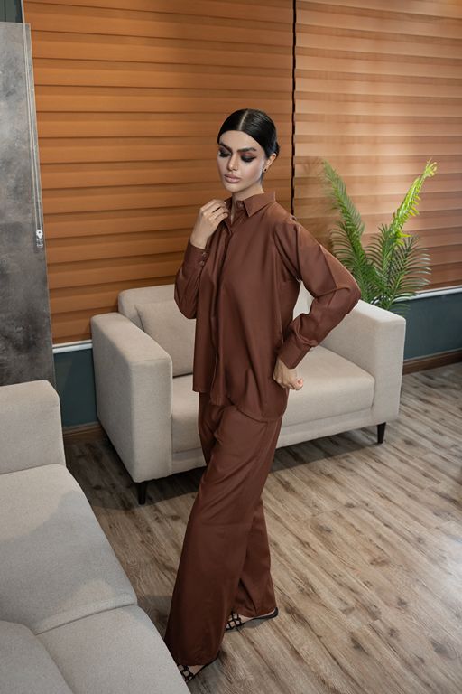 Crafted from breathable fabric ideal for tropical weather, this set features a button-down shirt with cuffed sleeves paired with straight-leg pants for effortless elegance and comfort.